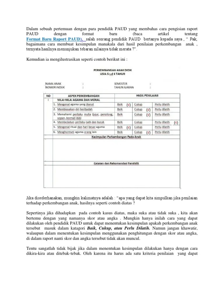 Cara membuat mengisi menulis kesimpulan raport paud tk kb tpa sps dapat dilakukan dengan .